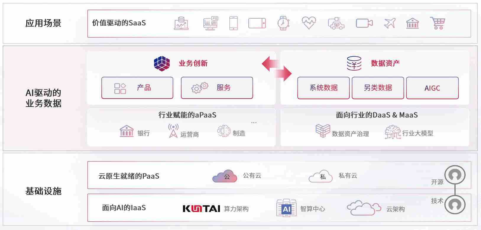 数字时代,,围绕企业数字化转型的关键要素,,PA旗舰厅数码开创性的提出数云融合战略和技术体系框架,,,,着力在云原生、、、数字原生、、、、AI原生和信创产业上架构产品和服务能力,,为处在不同数字化转型阶段的快消零售、、、、汽车、、、金融、、、、医疗、、政企、、、教育、、、、运营商等行业客户提供泛在的敏捷IT能力和融合的数据驱动能力,,,,构建跨界融合创新的数字业务场景和新业务模式,,助力企业级客户建立面向未来的核心能力和竞争优势,,全面推动社会的数字化、、智能化转型升级。。。